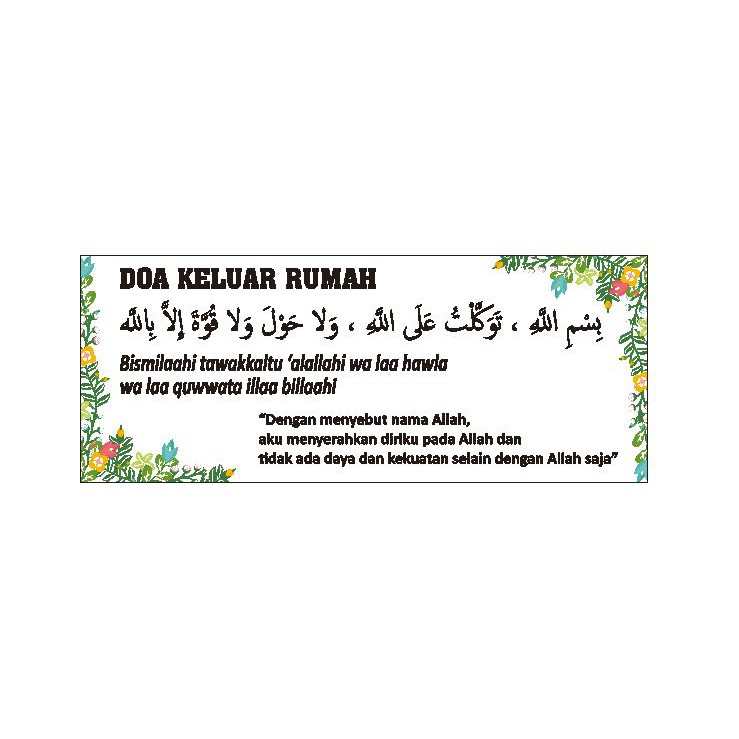Bismillahhi tawakkaltu 'alallah, laa haula wa laa quwwata illa billaah. dengan menyebut nama allah, aku bertawakkal kepada allah. Mohon baca deskripsi ukuran sebelum order ukuran = 25 x 10 cm bahan = vynil tanpa laminasi / vinyl laminating (daya tahan hingga 5 th) anti air tahan lama . Bagaimana bacaan doa keluar rumah yang sesuai . Sebagai umat muslim, mengamalkan doa keluar rumah saat hendak bepergian wajib hukumnya. Hendaklah umat muslim dan muslimah membaca doa berikut ini. 'bismillahi tawakkaltu 'alallah, laa hawla wa laa quwwata illa billah'. Sebelum atau sesudah melakukan sesuatu, umat muslim diharuskan membaca doa, termasuk saat hendak keluar rumah. Teman teman hanya lupa baca doa dulu ya.sejak pertama tayang, zaidan dan melody sukaaa sekali . Assalaamu 'alaynaa wa 'alaa 'ibaadillahish shaalihiina. Doa ampunan kepada allah swt setiap habis . Assalamualaikumkali ini doa keluar rumah. Kita juga memohon ketenangan diri di tengah kondisi keuangan kita yang sedang kritis. Simak doa keluar rumah beserta artinya di .